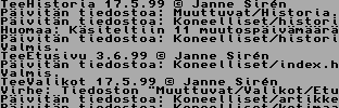 Toisaalta mekaaniset operaatiot, kuten valokuvaraporttien tuottaminen tai paljon toivotun päivityshistorian tekeminen, olisi kätevä koneistaa. Päivityshistoria oli jäänyt aikaisemmin kokonaan toteuttamatta sen työläyden vuoksi ja valokuvaraportit olivat kaikkea muuta kuin helposti käsiteltäviä. Tein siis tarkoitukseen pari apuohjelmaa lisää.