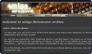 A.D.A. eli Amiga Demoscene Archive on pakkolinkki jokaiselle Amiga-demojen ystävälle. Tämän tyylikkään sivuston uumenista löytyy arkistoituna Amiga-demoja sekä alkuperäisessä muodossaan että videotiedostoina niille, joilla ei ole mahdollisuutta katsoa demoja Aidolla Koneella. Kirjoitushetkellä arkistossa on 176 demoa ja 1472 ruutukaappausta, ja määrän luvataan kasvavan jatkossa tasaisesti. Joukossa on tietenkin myös Assembly 2001:n yhdistetyn demokilpailun voittaja, Maturefurkin Lapsuus.