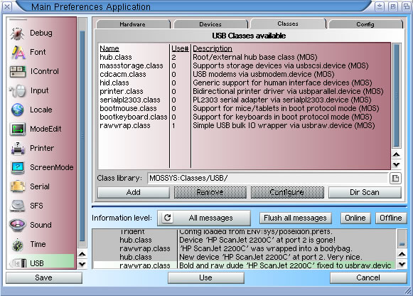 USB-pinon ainoaksi haittapuoleksi voidaan laskea USB-laiteajurien hyvin kapea tarjonta, mutta tilanne korjaantunee ajan myötä, sillä useita uusia laiteajureita on tekeillä tai niitä ollaan porttaamassa Linuxista MorpOS:lle. Varsinaiset USB-asetukset ja USB:n tilanäyttö oli kuitenkin toteutettu hyvin.